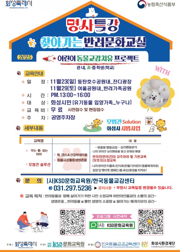 ☎ 문의: 031-297-5236 (사)KSD문화교육원/한국동물교감센터